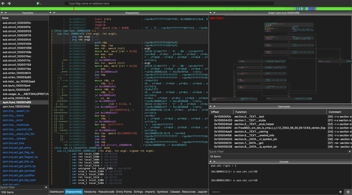 All the programs are also accessible as commands inside r2: